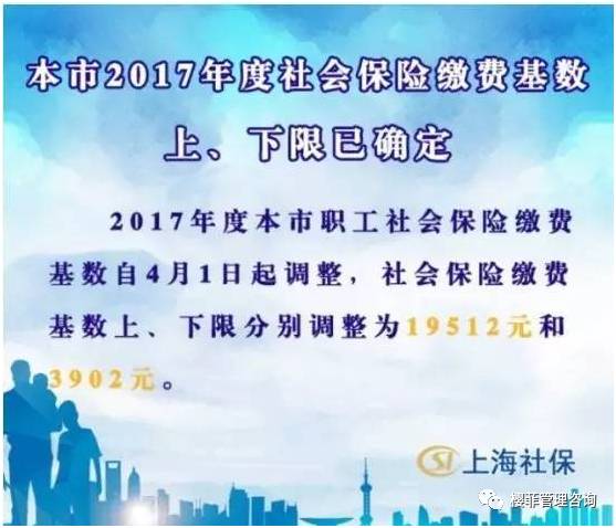 市人社局说,2017年度本市职工社会保险缴费基数自4月1日起调整,社保缴费基数上、下限分别调整为19512元和3902元。